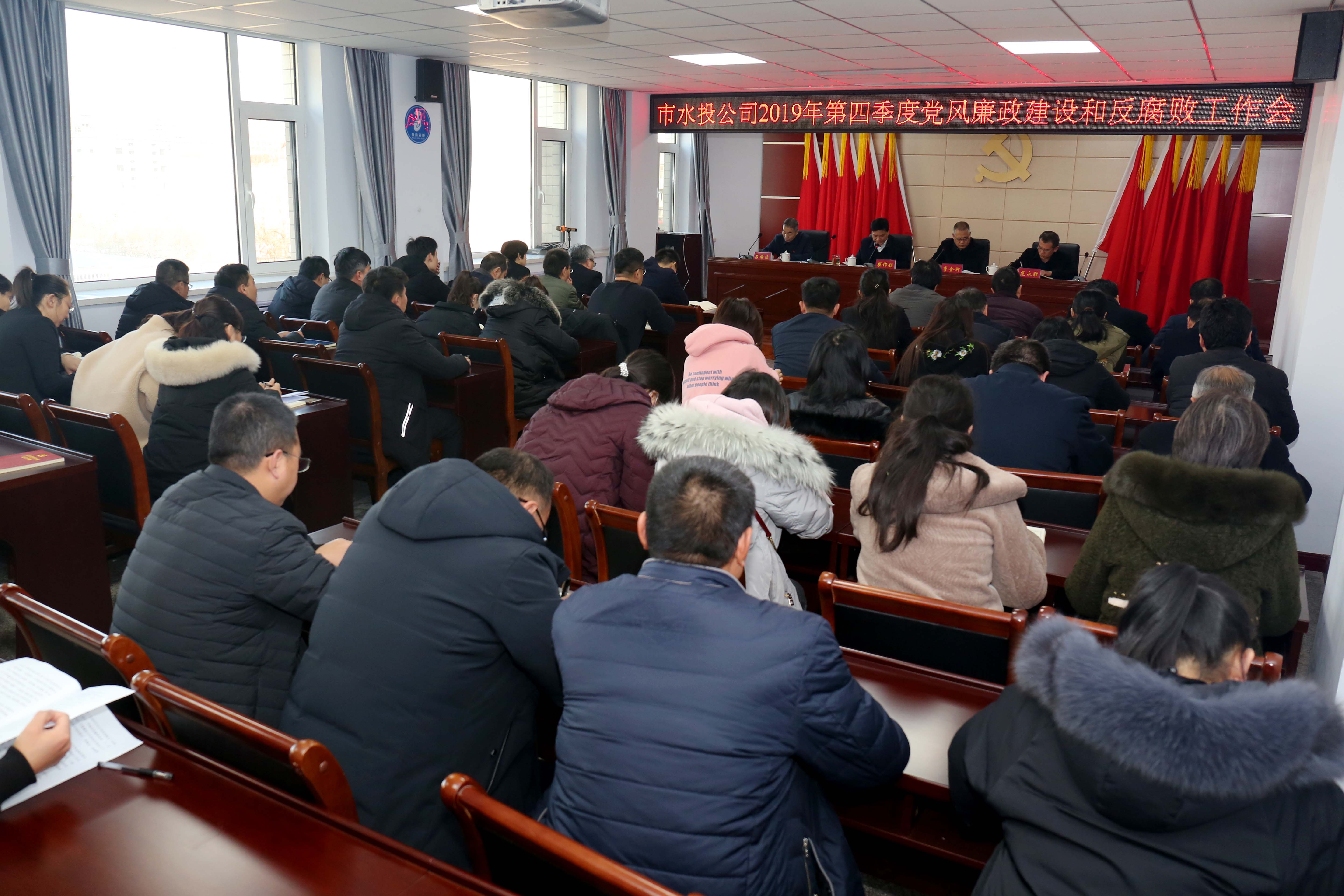 為深入貫徹落實全面從嚴治黨,營造風(fēng)清氣正的經(jīng)營發(fā)展氛圍,按照駐市工信局紀檢監(jiān)察組的安排部署,12月30日上午,公司召開2019年第四季度黨風(fēng)廉政建設(shè)和反腐敗工作會議。公司黨委班子成員及各黨(總)支部黨員參加了會議,駐市工信局紀檢監(jiān)察組組長李金鐘到會指導(dǎo)。