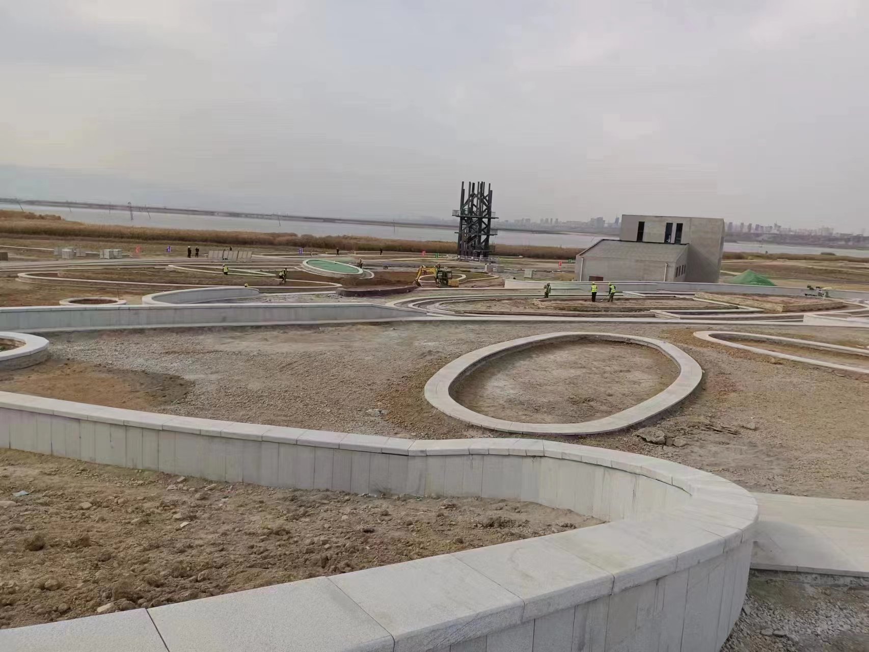 鴨子池水生態(tài)綜合提升工程重大項目不斷刷新建設(shè)新“進(jìn)度”,以實際行動踐行水投責(zé)任。主廣場1臺至4臺花池完成貼文化石;停車場水泥磚鋪裝完成。沙灘基礎(chǔ)平整完成,巡湖塔鋼結(jié)構(gòu)主體吊裝完成。