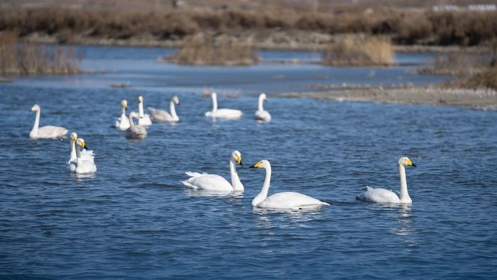 ▲美麗的大天鵝為冬日的鹽湖帶來(lái)了無(wú)限生機(jī)