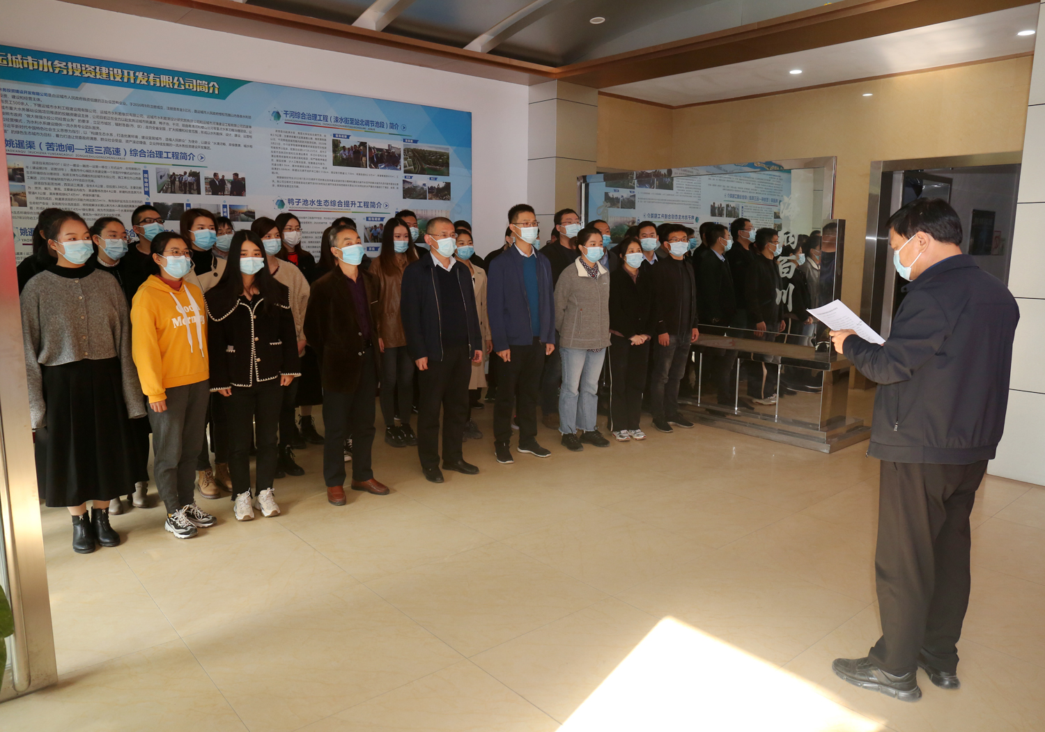 公司董事長(zhǎng)兼總經(jīng)理崔作銘作出重要講話,對(duì)我公司全體人員提出三點(diǎn)要求:一是要提高認(rèn)識(shí),擔(dān)責(zé)克難;二是要強(qiáng)化執(zhí)行,真演真練;三是要堅(jiān)持不懈,抓常抓長(zhǎng)。要求我公司人員要牢固樹立防范重于處置的理念,變被動(dòng)應(yīng)對(duì)為超前防范,做好秋冬季疫情防控工作,把風(fēng)險(xiǎn)因素降到最低程度,為公司經(jīng)營(yíng)發(fā)展做大做強(qiáng)創(chuàng)造穩(wěn)定的環(huán)境。