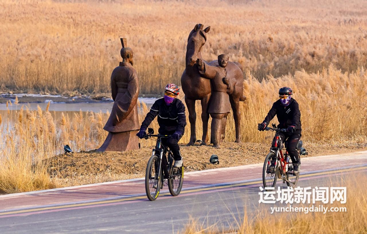 剛?cè)雸@就看到極具河?xùn)|特色的風(fēng)物,一冊竹簡矗立在入口處,“雷澤巨跡”“鯉躍龍門”幾個(gè)字入了心。再往深處,亦見豐盈清雅的山水風(fēng)光。金色的蘆葦叢,波光粼粼的鴨子池,遠(yuǎn)處城市煙火氣的剪影,近處清麗婉轉(zhuǎn)的鳥鳴聲……
