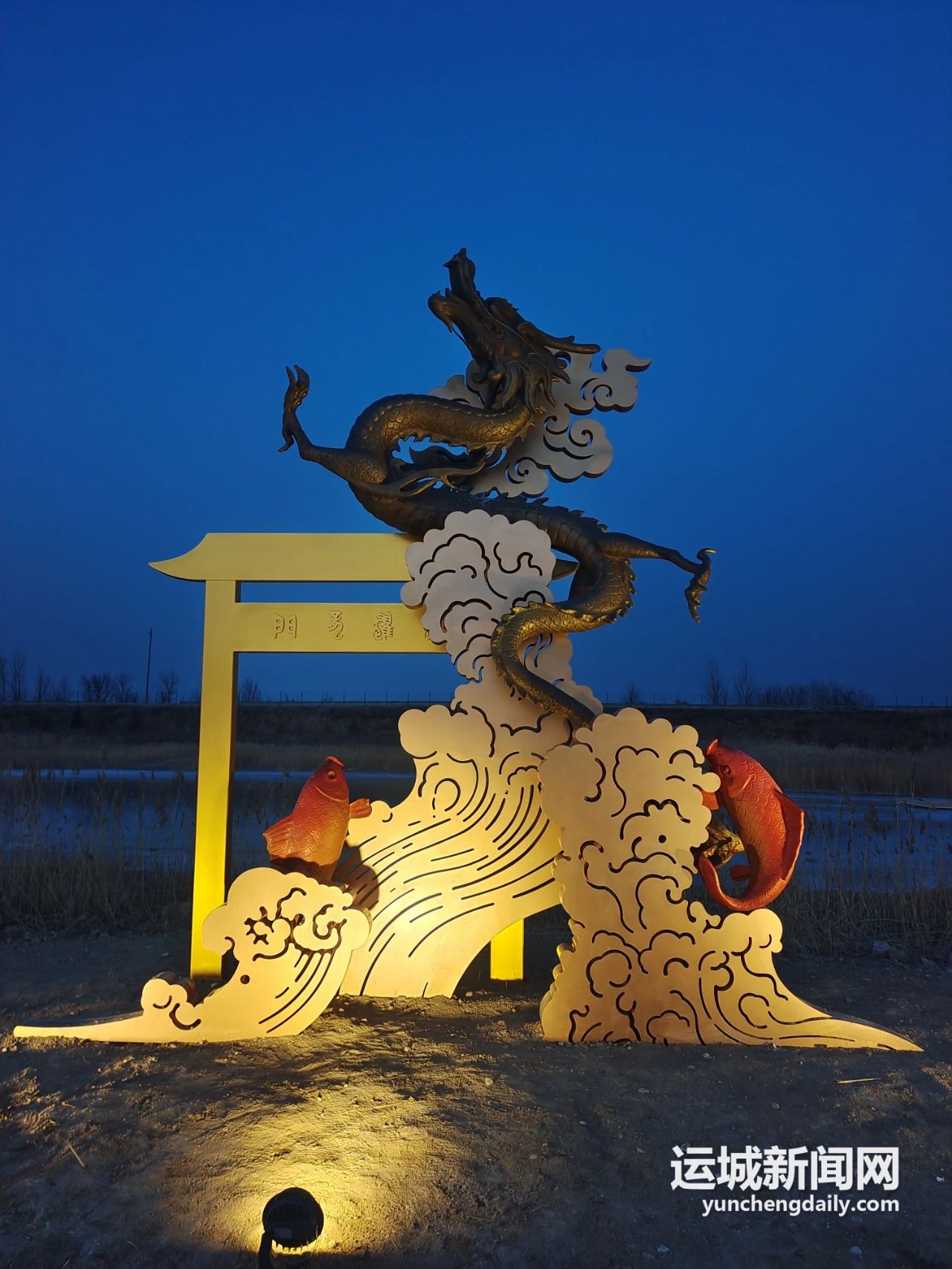 “鯉躍龍門”雕塑,魚躍龍門,鯉魚化龍,栩栩如生,比喻人要改變命運(yùn),必定逆流而上,奮發(fā)圖強(qiáng),總有成功之日……