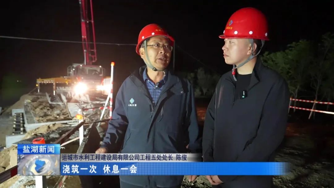 現(xiàn)在是4月28日晚上11時30分,在我身后,姚暹渠鹽湖段最后一部分水泥板正在進(jìn)行澆筑。澆筑完成后,全長24.9公里的姚暹渠鹽湖段主體渠道將實現(xiàn)合龍,形成完整的過水通道,標(biāo)志著工程迎來關(guān)鍵的階段性勝利。
